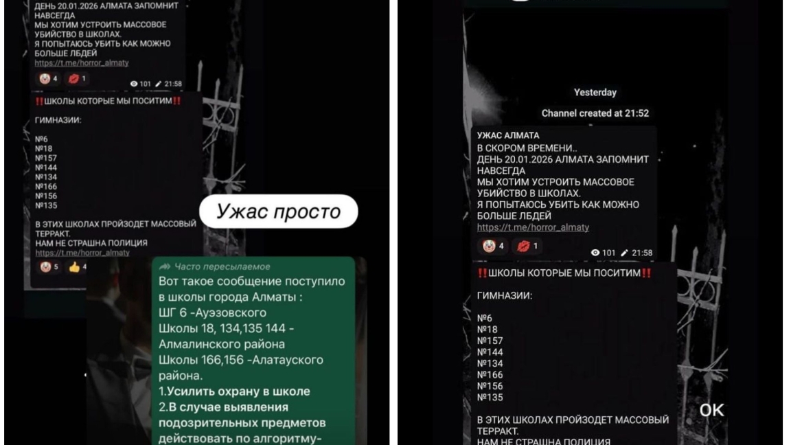 «Қаланың құқық қорғау органдары жағдайдан хабардар және оны бақылауда ұстап отыр. Олармен бірлесіп білім алушылар мен білім беру ұйымдары қызметкерлерінің қауіпсіздігін қамтамасыз етуге бағытталған қосымша алдын алу шаралары қабылданды», – деп жазылған басқарма таратқан хабарламада.