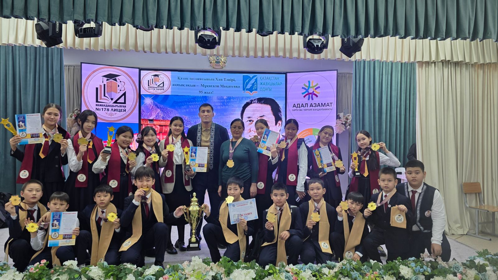 Қазақстан Жазушылар одағының қолдауымен, №178 мамандандырылған лицейдің ұйымдастыруымен қазақ поэзиясының Хан Тәңірі, ақиық ақын Мұқағали Мақатаевтың туған күніне және ақынның 95 жылдық мерейтойына орай 6-сынып оқушылары арасында «Поэзия, менімен егіз бе едің?!» тақырыбында лицейішілік байқау жоғары деңгейде өткізілді, деп хабарлайды Tarazy.kz