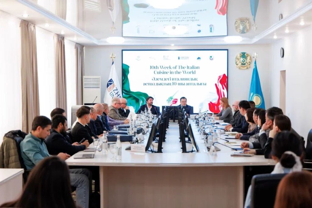 Мәдени басқосуда университет ректоры Ермек Бөрібаев құттықтау сөз сөйлеп, Италиямен мәдени және білім беру байланыстарын нығайтудың маңыздылығын атап өтті. БҰҰ Тұрақты даму қорының президенті Маурицио Ароника «Дәстүрден инновацияға: италиялық және қазақстандық тағам мәдениеттерін байланыстыратын тұрақтылық» атты баяндама оқып, тұрақты азық-түлік жүйелерін дамытудағы екіжақты ынтымақтастықтың әлеуетіне тоқталды.