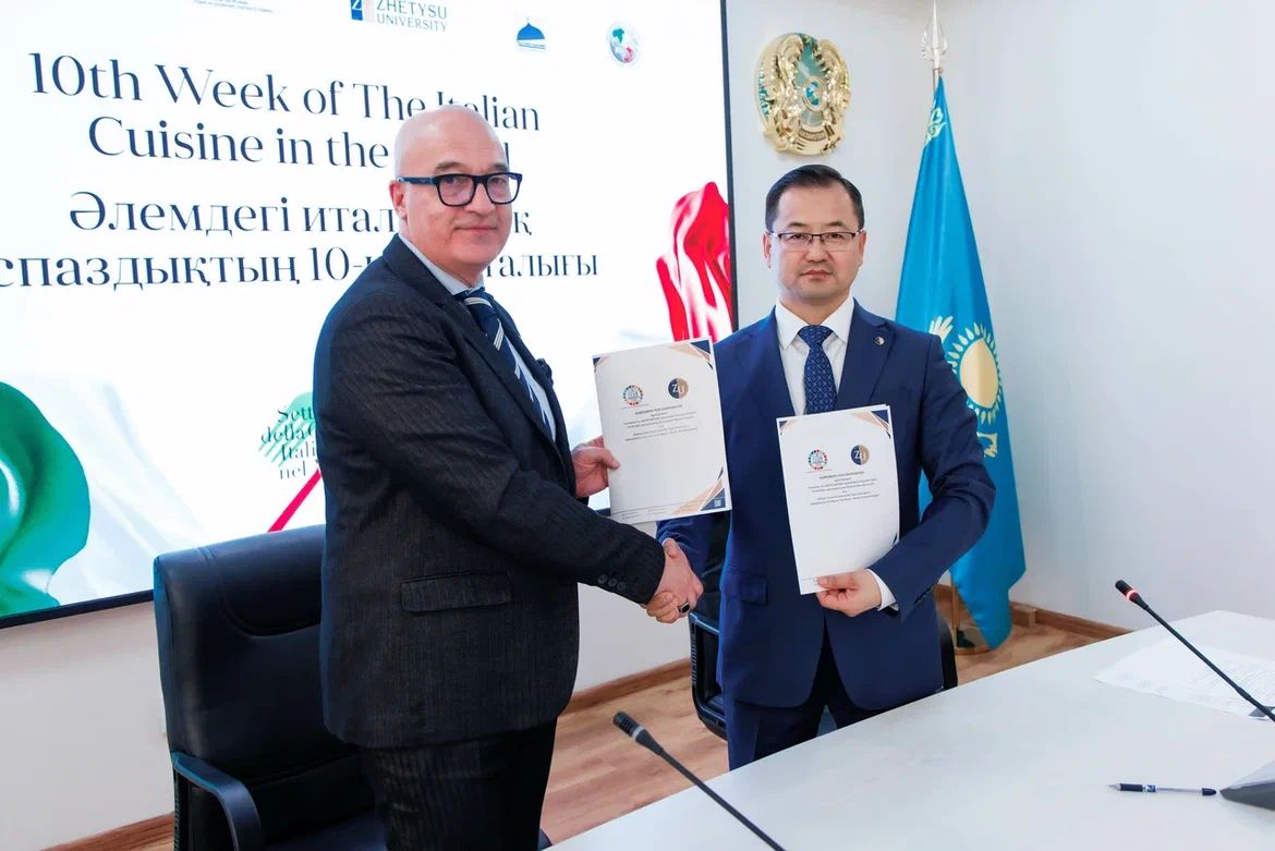 Ілияс Жансүгіров атындағы Жетісу университетіне Италия Республикасының Қазақстандағы Миссия басшысының орынбасары Аниелло Петито бастаған италиялық делегация келді. Дипломатиялық корпус өкілдерін, халықаралық ұйымдарды, шетелдік жоғары оқу орындарын және қазақстандық академиялық қауымдастықты бір арнаға тоғыстырған «Италия асханасы апталығы» мәдени шарасы өтті. Шараға Марке политехникалық университеті, Камерино университеті (Италия) және Шаньдун ауыл шаруашылық университетінің (Қытай) ғалымдары да қатысты.